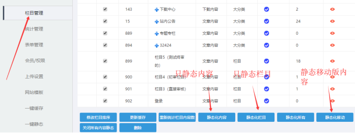 C:勾選所有欄目------點擊靜態化移動------------------移動版的內容,都可以靜態下。