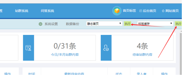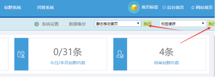 B:靜態化移動版首頁-------先更新標簽緩存(執行)------點擊靜態移動首頁(執行)-------移動首頁就靜態了