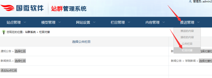 進入站群后臺---選擇推送管理----公共欄目;可以看到我們創建好的站群公共欄目