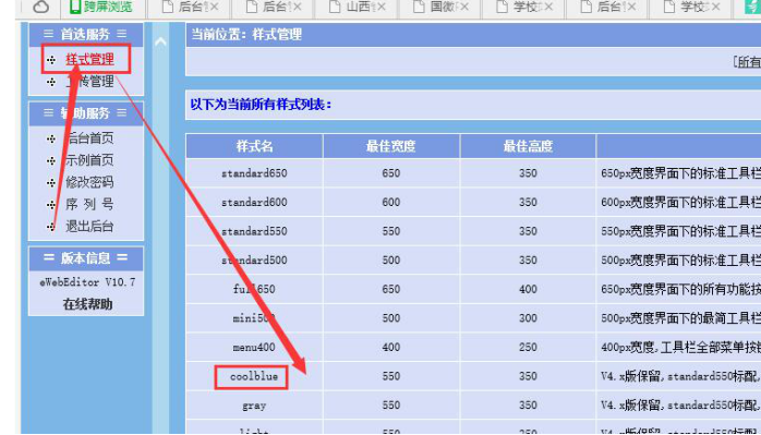 選擇樣式管理---coolblue,里面可以設置上傳大小。
