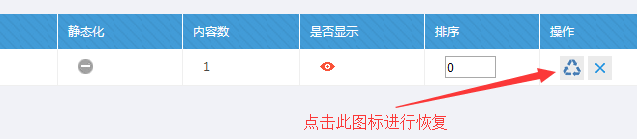 B:點(diǎn)擊回收站按鈕------則欄目恢復(fù)到正常狀態(tài)--------后臺(tái)欄目管理刷新查看效果