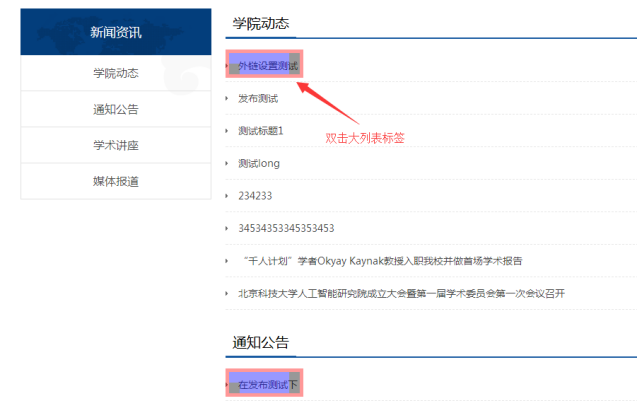 3)、如果有些大列表想與其他大列表的標簽樣式不一樣,比如需要顯示圖文排列效果的,這種情況,就需要新建一個大列表模板,將大列表里面的標簽名字改為不同的,最后雙擊標簽,設置自己所需的樣式即可。