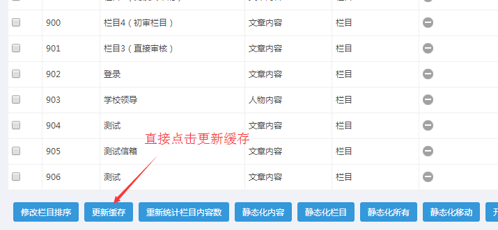 如果欄目預覽和數據展示有異常,可以考慮更新下欄目緩存。(不需要勾選欄目的)