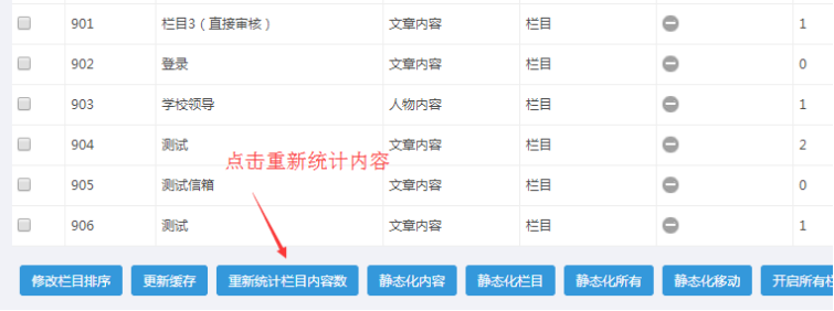 當前臺內容數量顯示不正確的時候,就點擊重新統計欄目內容數。(不需要勾選欄目的)