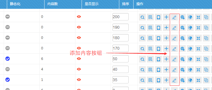 添加內容:在此欄目下添加內容(一般會員中心添加); 欄目標簽:點擊此處,可以進入此欄目的標簽可視化狀態