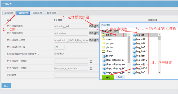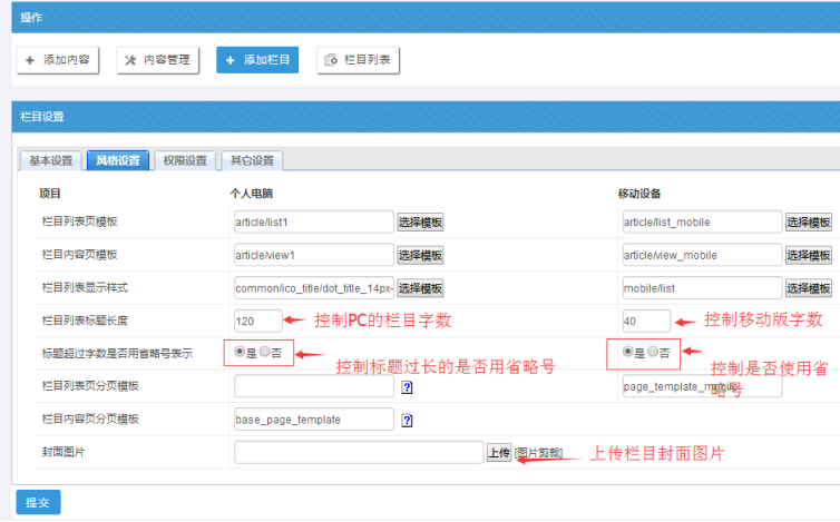 進入如下的欄目管理界面,可以對欄目風格進行設置:
