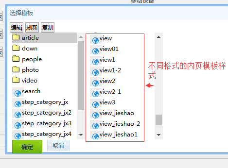 欄目的內頁模板選擇,點擊此處進行操作;內頁模板一般以view開頭命名。