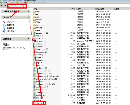 2、進入服務(wù)器,打開D盤—P8_serv----PHP文件夾,將里面php.ini復(fù)制備份一份;然后用上面下載的php.ini文件放入進來替換即可。