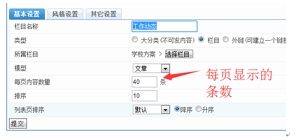 基本設置---每頁顯示內容數量的設置,一般默認即可,可以自己調整