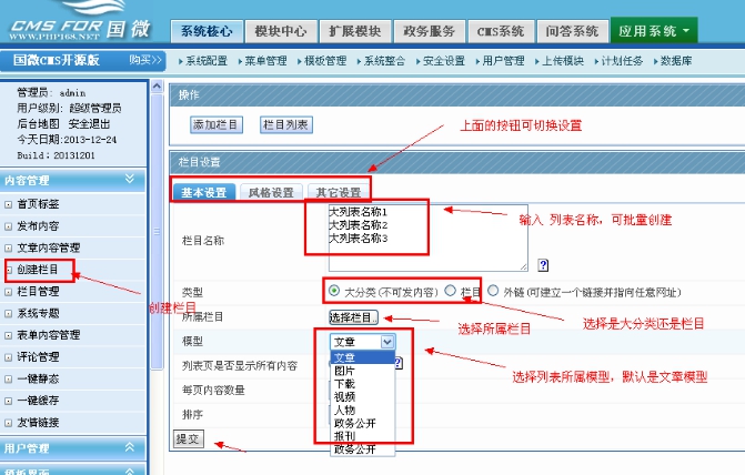 國微CMS欄目創建教程