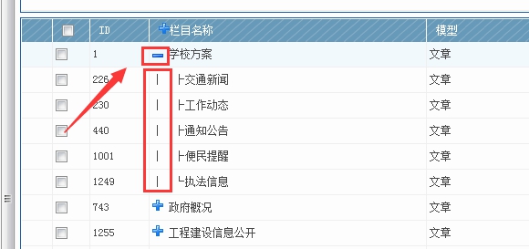 默認(rèn)的欄目是收縮的,如果需要讓欄目展開,點(diǎn)擊前面的”+”號(hào)符號(hào)