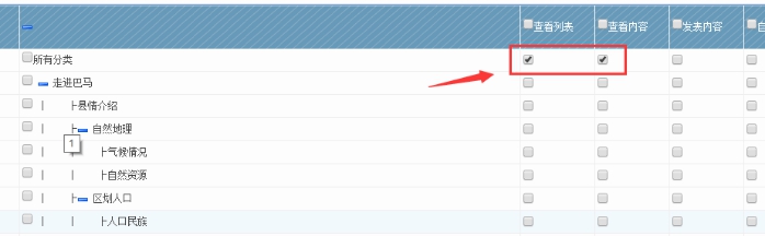 5、先勾選 查看列表和 查看內(nèi)容,表示他可以查看任何欄目的內(nèi)容。