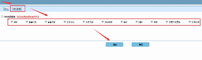 3、點擊 cms系統(tǒng)----然后勾選下面的所有選項------點擊確定