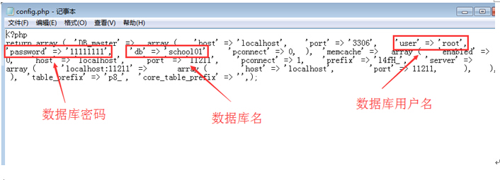 有時候我們需要知道該網站的數據庫配置信息,如數據庫用戶名、密碼、數據庫名等這些信息: