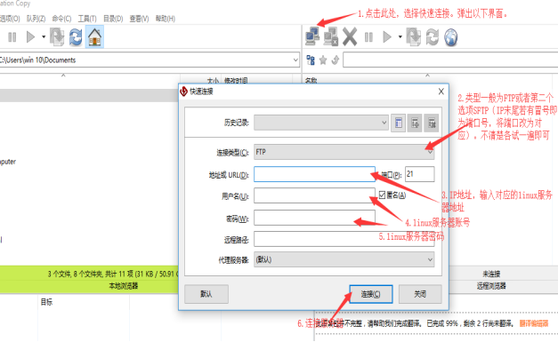 1、利用FTP(FlashFXP 百度下載即可)傳輸工具連接linux服務器;