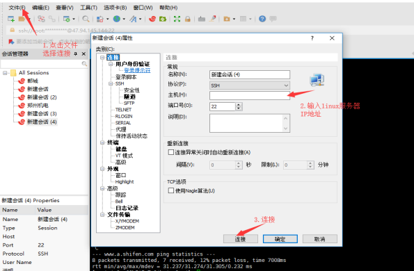 三、利用Xshell(百度下載)工具連接對應的linux服務器
