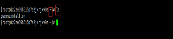1.成功連接之后默認會在root目錄之下( ~ 表示當前路徑在root目錄下),直接輸入ls命令回車查看該目錄下的文件,會顯示gwcmsinstall.sh。