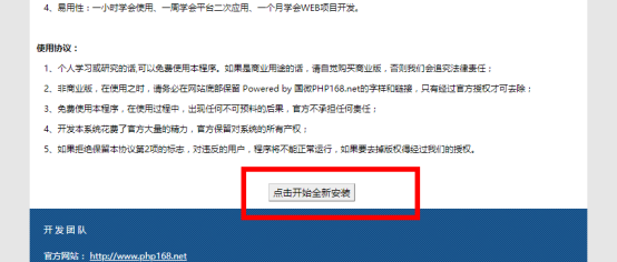 在瀏覽器輸入linux服務器IP地址即可進入程序的安裝界面。點擊 開始安裝。