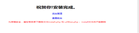 出現此界面就表明系統安裝成功,點擊后臺管理進入后臺,輸入第三步設定的賬戶名及密碼。