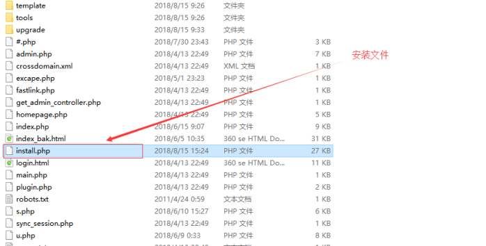 由于每個網站安裝后,根目錄下的install.php安裝文件都會自動刪除;你需要在現有的標準程序中,復制install.php(是一個文件,不是文件夾)傳到網站根目錄。