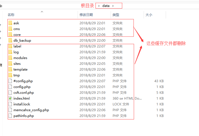 由于是整體壓縮,之前網站里面的緩存文件也保留下來了,現在需要刪除;進入網站根目錄下data目錄,僅保留db_backup數據備份目錄(如有站群系統,db_backup_sites備份數據目錄也保存),現在網站就可以進入重新安裝的狀態了。