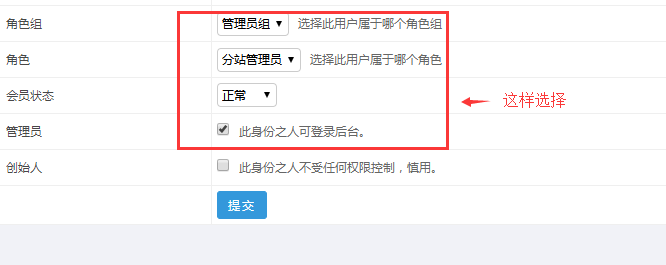 如果用戶是站群子站的管理員,一般就是選擇下面這個角色,并且勾選那個“管理員”