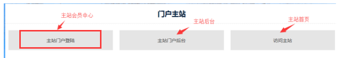 會員中心入口: 點擊第一個按鈕“主站門戶登錄”;即可進入。