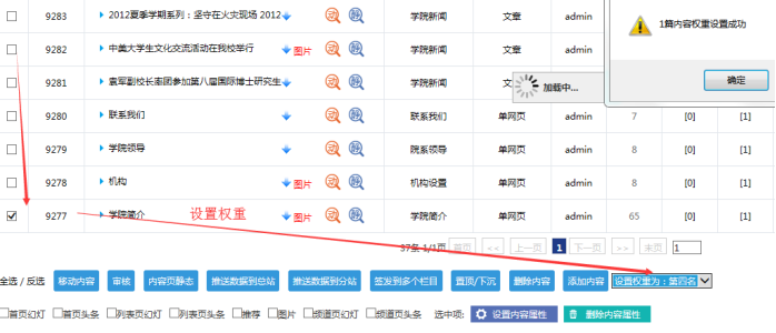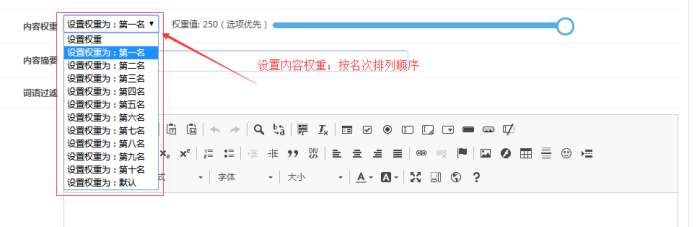 點擊發布內容或修改內容-----設置內容權重(按名次排序)----提交即可