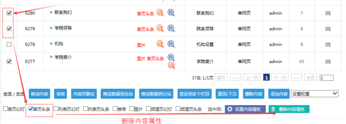 C、取消子站屬性的話------勾選對應的內容-----點擊“刪除內容屬性”即可