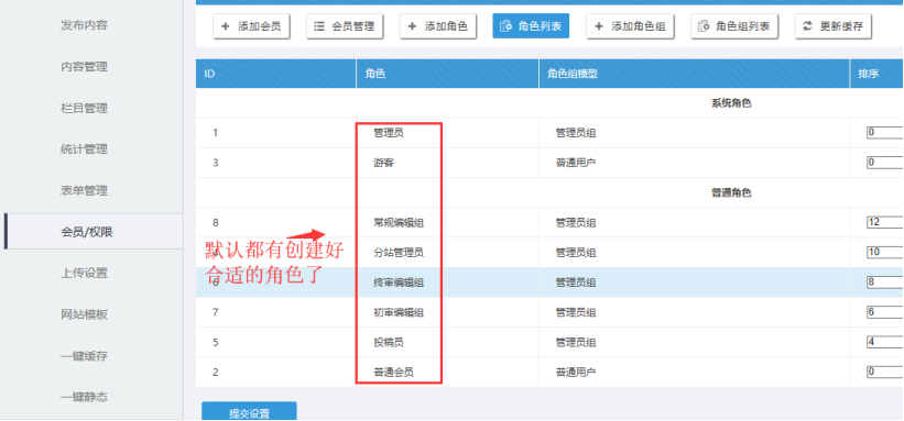 這些角色都默認創(chuàng)建好了,一般只需使用即可。 其中站群的院系部門分站的管理員,就放在“分站管理員”。主站的欄目管理員,