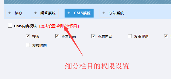 接下來就可以來設(shè)置各個欄目的細分權(quán)限了。