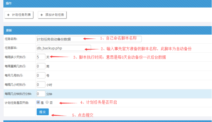 腳本代碼是: db_backup.php           一般設置5天備份一次;
