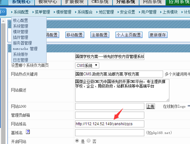 解答:繼續登陸賬號或強制登陸,然后輸入:地址/admin.php/core-base_config