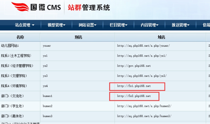1、進入站群后臺;選定你需要設置二級域名的分站點