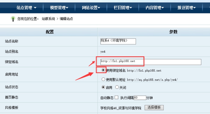 如果我們想讓每個分站都可以用二級域名訪問,我們需要做兩個步驟的設置;一是在網站的分站后臺需要設置域名;另外需要在服務器里面將此域名綁定服務器,重啟apache即可。然后更新全站緩存。