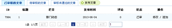 新發布的文章在——待審核的文章欄目下 狀態顯示為未審核 等待管理員的審核