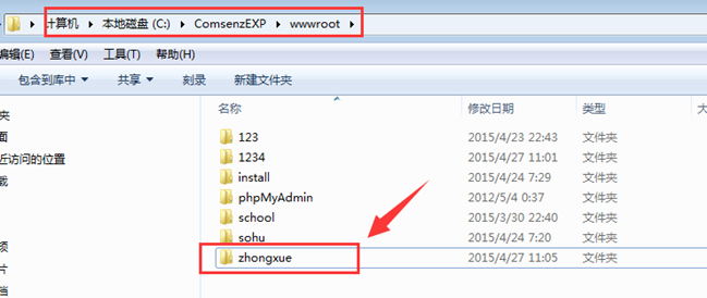 進入服務器;路徑:某某盤(默認C盤)----ComsenzEXP---wwwroot下