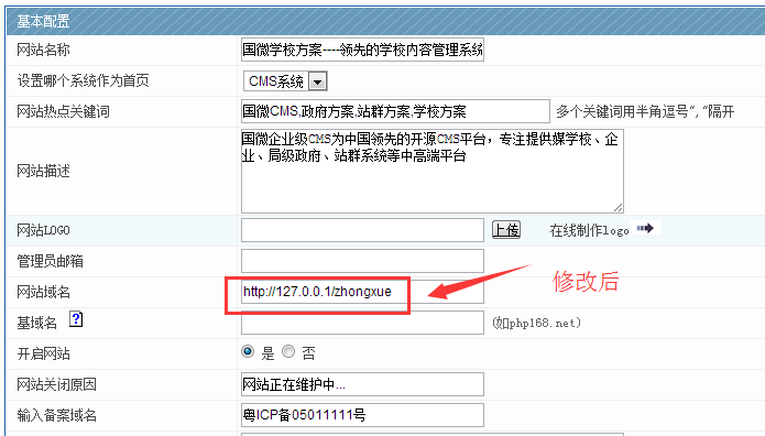 2、 修改網站后臺的域名