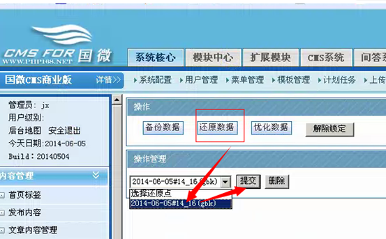 備份數據的文件所在位置: 網站根目錄---data--db_backup-----里面的數據庫備份文件按日期的,只需復制最后那次備份的即可。