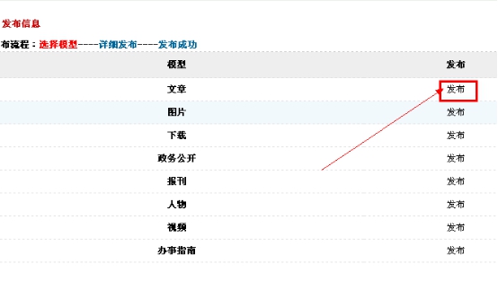 C ) 、在下面的模型中,點擊發(fā)布按鈕即可;一般是選擇 文章、圖片、下載、視頻這幾個模型。