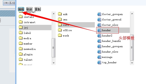 3、公共頭部在core里面,選擇后,點擊編輯。