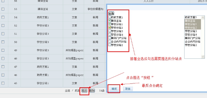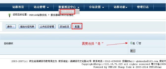 B、首先,我們選擇底部那個為“是”,就是主站推送給分站的內容會自動在分站顯示,無需人工審核;如果選擇了“否”,主站推送給分站的內容就需要分站審核后再顯示了。