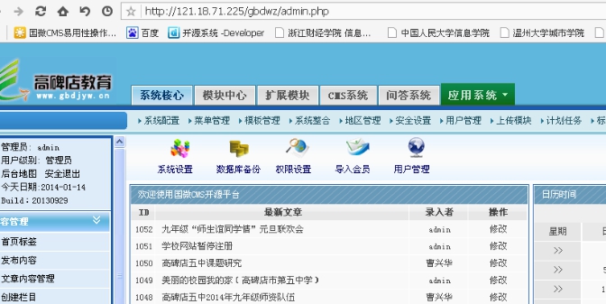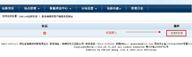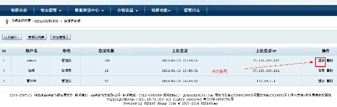 A、在主站站群列表中點擊“管理”后,點擊 管理員管理
