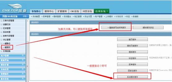 2、 更新網(wǎng)站緩存。一般更新模塊緩存即可,如果看不到效果,就更新所有緩存。