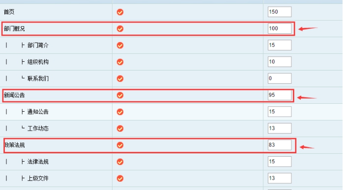 一級菜單之間的排序按大小順序排列,與二級菜單無關。數(shù)字大的排在前面。
