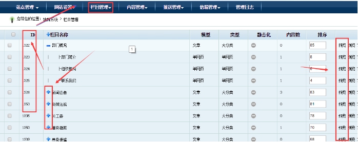 可以點擊欄目管理,然后點擊前面的“+”號展開下級欄目,可以看到前面的了那么ID,一般只需替換欄目數(shù)字ID號即可。也可以點擊右邊的預覽(第二個預覽),獲得地址。