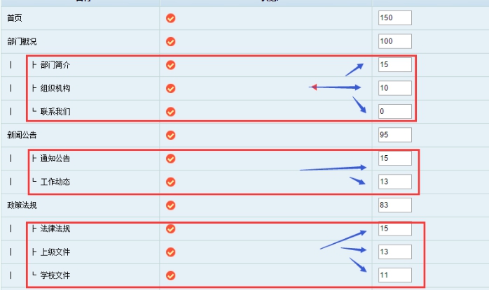 2、修改菜單排序:導航排序是數(shù)字大的在前面,小的在后面;菜單排序只和同級比較;一級菜單和二級菜單他們是分開比較的;