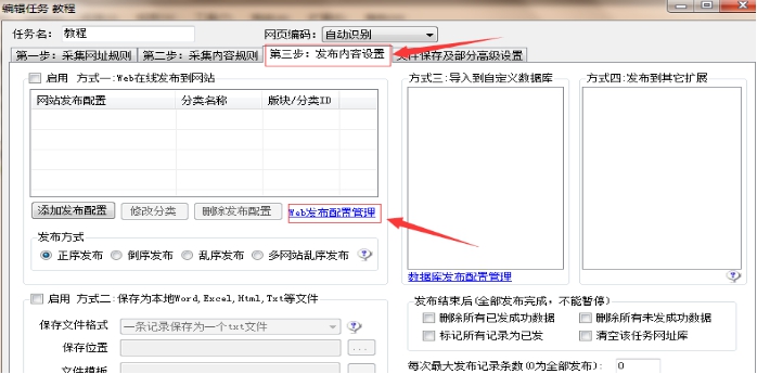 1、點(diǎn)擊“第三步:發(fā)布內(nèi)容設(shè)置“中的”Web發(fā)布配置管理“鏈接,如下圖所示: