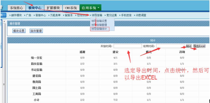 信箱統(tǒng)計我們分前臺和后臺,前臺主要是給用戶查看的,后臺主要給管理員用的,可以導出EXCEL。