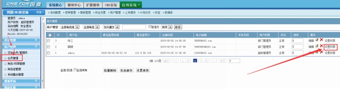 和角色設置權限類似,用戶管理—會員管理---點擊某個會員右邊的“設置權限”